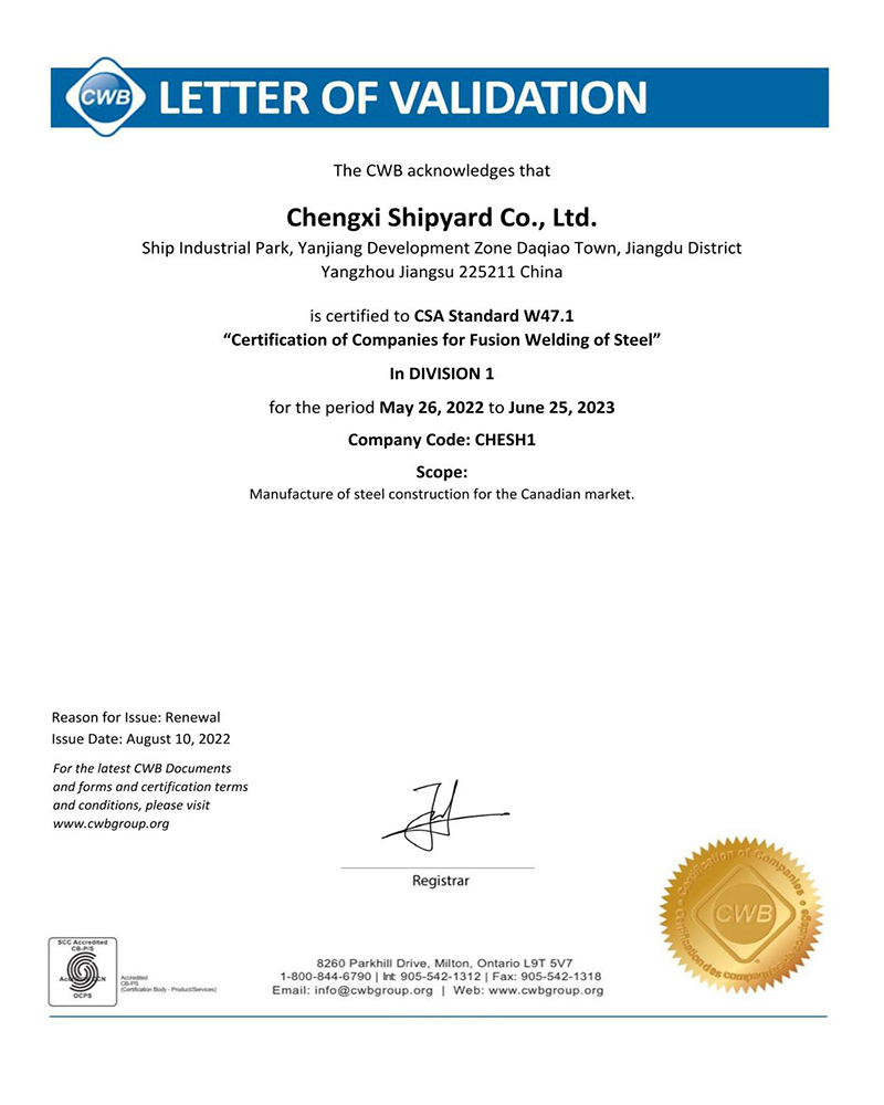 公司非船以鋼結構制造等業務為核心,主要從事國內外風力發電塔塔架制作,產品遠銷歐洲、美洲、澳大利亞及非洲等地,相繼取得歐洲EN1090-1、EN1090-2認證、日本大臣認證及加拿大CWB認證,并...詳情 >>